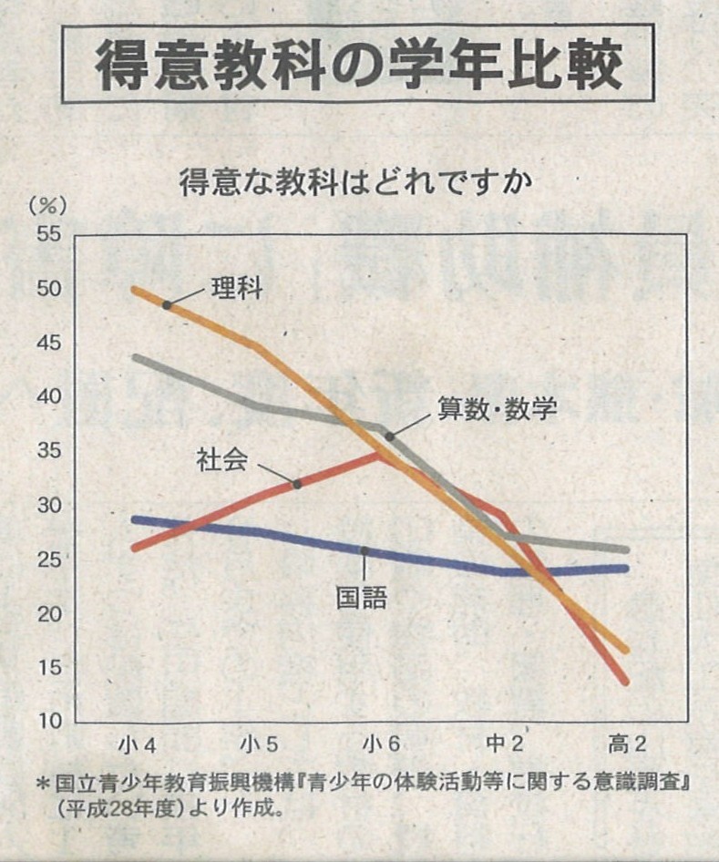 アクティブ・ラーニング(全員参加型教育)の本格導入で得意教科の減少に歯止めがかかるといいのですが。
